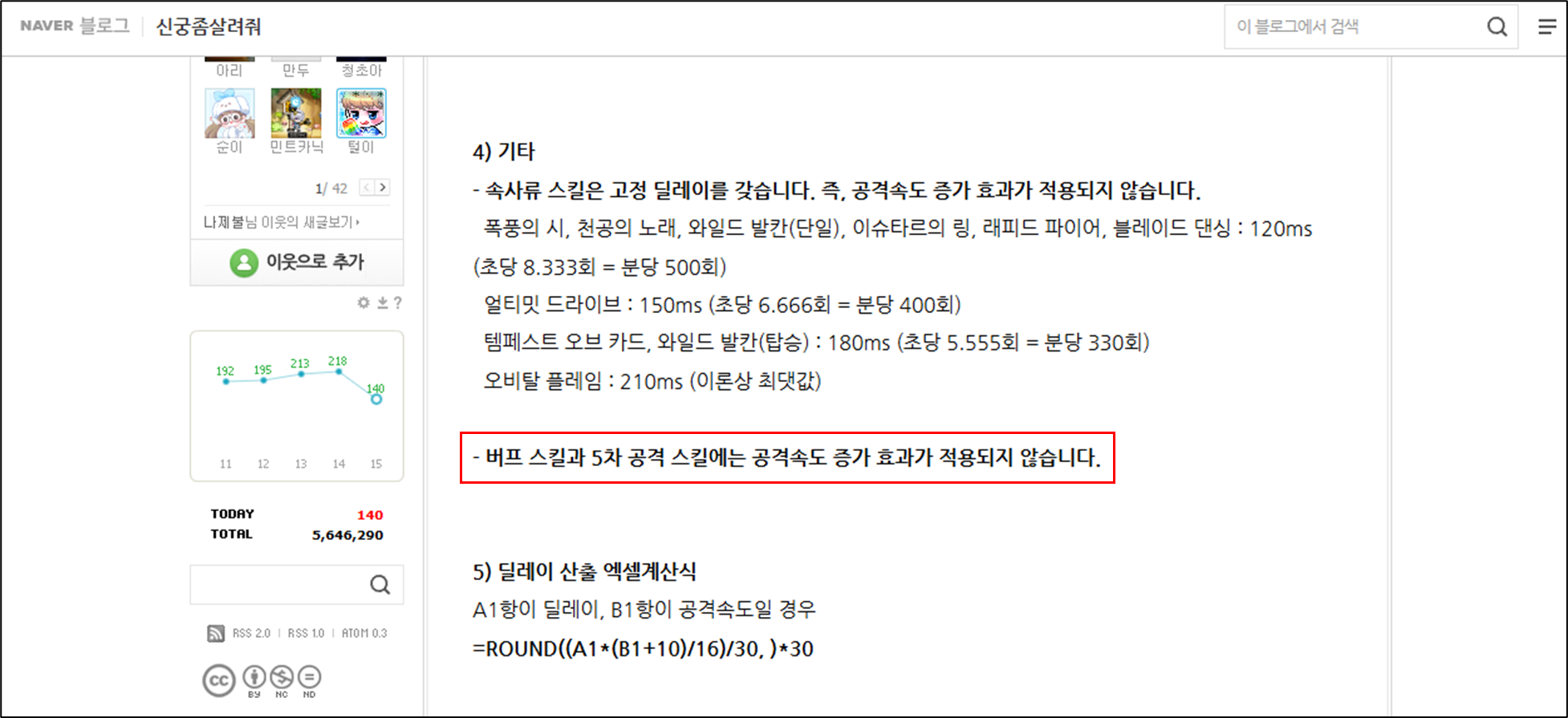 DPM을 개발할 때 나제불 님 블로그에서 "버프 스킬과 5차 공격 스킬에는 공격속도 증가 효과가 적용되지 않습니다."라는 문구를 보고 실제로 적용하지 않았었고, 피드백받은 스킬들만 적용했었습니다.