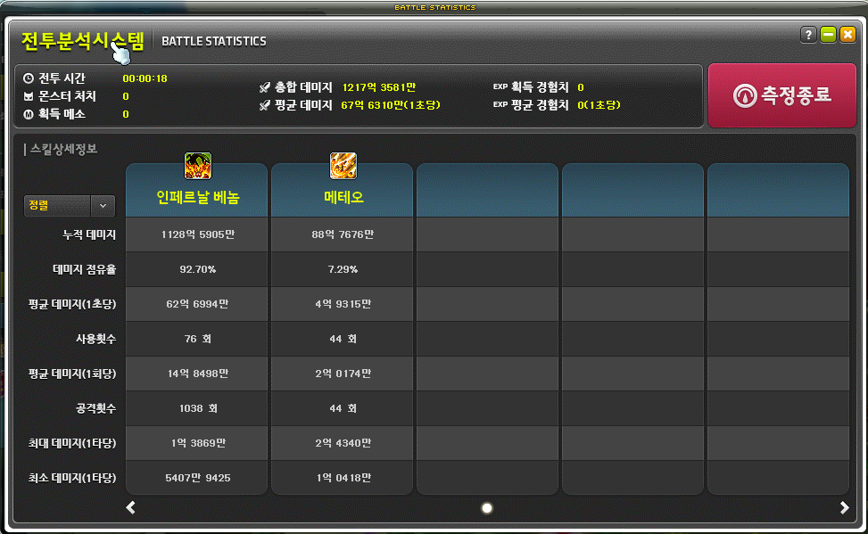 하지만 실제 인게임에선 아래 이미지처럼 공격 76회, 타수 1038회가 발생함.